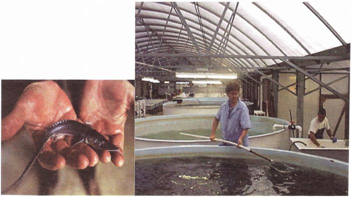 Mersin balıklarının pazarlama ağırlığı konusunda şimdiye kadar fazla bir uygulama yapılmamıştır. Bazı ülkelerde, mesela Macaristan'da A. ruthenus (Çoka balığı) türünün yenecek büyüklüğe gelinceye kadar yetiştiriciliği yapılmaktadır. Bu maksatla, bu türün yavruları, Tuna nehrinden yakalanır ve sazan semirtme havuzlarında uzun bir süre bakım ve beslemeye alınır. Bu havuzlarda yavrular ı yılda ı 75-325 g. arasında ağırlıklara ulaşabilmektedirler. Tahminlere göre bu türün ı kg. ağırlığa ulaşabilmesi için 5-6 yıl gerekmektedir. Bu şekilde havuzlarda yetiştirilen bu mersin türü etinin yağlı ve lezzetli oluşu nedeniyle oldukça ilgi görmektedir. ![]() Mersin balığı üretim çalışmaları HAVYAR ÜRETİM TEKNİĞİ: Mersin yetiştiriciliği veya mersin avcılığı dendiğinde, doğal olarak, ilk akla gelen, dünyaca meşhur olan havyardır. Havyar, tuzlanmış balık yumurtasına denir. İyi cins havyar, ancak kışın elde edilir ve hazırlanması da oldukça güçtür. Siyah ve kırmızı olmak üzere iki cins havyar vardır. Bunlardan makbul olanı siyah havyardır. Küçük boncuklar halindeki bu havyar, kapalı kutularda muhafaza edilir. Kırmızı havyar ise genellikle yassı kalıplara dökülerek balmumu içinde saklanır.