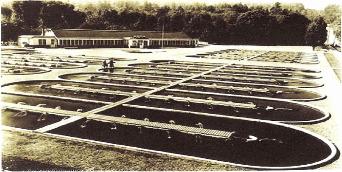 ![]() Alg üretim tankları Yoğun üretim tanklarında, verilecek olan gübrenin oranı ve veriliş sıklığı kültürün gelişimini kontrol ettiğinden, Tablo 2'de de görüldüğü gibi standart gübrenin üçte biri, üç günde bir olmak üzere tanklara verilir. Hedeflenen yoğunluğa ulaşan alg kültür, rotifer beslemede veya muhafaza amacıyla konsantre edilmeden önce sıcaklığı kontrol edilebilen tanklara transfer edilir. AIg kültürünün bir tanktan diğerine nakli spiral hortum takılmış olan dalgıç pompalarla yapılmaktadır. Bu işlem sırasında hortumun ucuna yerleştirilen 45 mikronluk plankton kepçesi ile alg filtre edilir. HÜCRE SAYIMI: Fitoplanktonun hücre sayımı biyolojik mikroskop altında sayım kamarası (hemasitometre) kullanılarak yapılır. Sayım karnarası ortasında kalın dikdörtgen veya H şeklinde sayılacak fitoplankton hücrelerinin yerleştirileceği dairesel girintiler içerir. Kamaranın tipine göre derinliği 0.1 mm olan bir odacık oluşturan bir veya iki sayım alanı bulunur. Sayım amacıyla her bir kültür tankından alınan üçer örnek iyice karıştırılır. Pastör pipet kullanılarak örnekten bir damla sayım kamarasındaki odacığa tespit edilir. Örneğin sayım odacığına yerleştirilmesinde aşağıdaki hususlara 'Sayım kamarası temizlenir ve %90'lık alkol içerisine konur. Kesinlikle toz ve yağdan arındırılmalıdır. . Lamel sayım kamarasının ölçümlendirilmiş (cetvelli) kısmına yerleştirilir. 'Bir damla örnek (lamelin karşılıklı kenarlarına kadar yayılacak miktarda) lamelin üstüne damlatılarak sayım odacığının içerisine girmesi sağlanır. 'Örnek taşmaya sebep olacak kadar fazla veya sayım odacığını tam doldurmayacak kadar az olmamalıdır. -Petri kutusunun içerisine Örneğin buharlaşmasını önlemek için bir parça ıslak kağıt yerleştirilir. Sayım kamarası petri içerisine konarak hücrelerin çökmesi için 5 dakika bekletilir. Fitoplankton sayımında yaygın olarak, ölçümlendirme ve ebatlarına göre üç tip kamara kullanılmaktadır. Thoma tip sayım kamarasında en büyük karenin ebatları 1 mm x 1 mm' dir. Burker-Turk tipinde 3 mm x 3mm ve Neubauer Bu sayım odacığı büyük, orta ve küçük karelere sahiptir (Şekil 3 A, B ve C). Büyük karenin alanı (Şekil 3 A) Imm x Imm'dir. Büyük bir karede genellikle 16 veya 25 orta büyüklükte kare (Şekil 3 B) bulunurken, orta büyüklükte bir kare de 25 adet küçük kareye (Şekil 3 C) sahip.tir. Rastgele 5 tane orta (B) büyüklükte kare seçilerek, bu karelerde kalın çizgilerle çevrelenmiş olan alan içerisinde kalan tüm hücreler mikroskop altında 200-400 kez büyütülerek sayılır (Şekil 3). Eğer kültürün hücre yoğunluğu düşük ise büyük kare (A) içersindeki tüm hücreler sayılır. Sayımı yapılan kareyi çevreleyen üst ve sol kenar çizgisine dokunan hücreler sayılırken, alt ve sağ kenar çizgisine dokunanlar sayılmaz. ![]() büyük havuzlar içerisinde alg üretimi -Orta büyüklükteki S karede sayılan toplam hücre sayısı: NI + N2 + N3 + N4 + N5 • Buna göre fitoplankton hücre yoğunluğu (hücre/ml) aşağıdaki şekilde hesaplanabilir