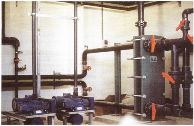 ![]() ![]() Top: Cleaning the sea water used in larva production by passing it through high pressure sand filters. Bottom: Temperature regulation in hatchery production facilities. (heat exchanger system)