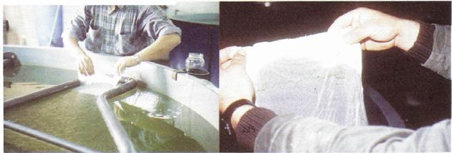 ![]() ![]() Top: During the larva production period, the tanks are cleaned by spraying air to remove the dirt and oil layer formed on the surface. Bottom: The process of cleaning the air brooms and the oily dirt seen on the cloth.