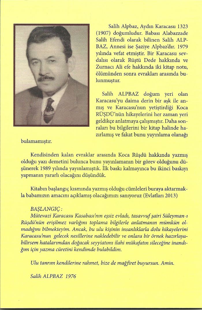 Özel » Karacasu » Karacasu'lu Koca Rüşdü ( Yazan: Salih Alpbaz 1975)![]() ![]() Yazan : Salih ALPBAZ Yazım tarihi 1976 Birinci baskı 1989 İkinci baskı: 2013