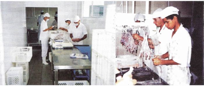 Günde bir veya iki defa üretim tanklarındaki gibi zengin bir yem formülü ile yavruların beslenmesine devam edilir. Buna ilaveten doğada ki algler, mantarlar ve bazı yararlı bakteriler de yavruların gelişimini arttıracaktır. Meksika 'da yapılan bazı çalışmalarda yeme %50 oranında fitoplankton ilavesi sonucunda larvaların büyümesinde ve metamorfoz döneminde olumlu etkilerinin olduğu bildirilmiştir. Beş hafta sonra metamorfoz dönemi başlar. Bazıları daha yavaş gelişeceği için 3 saatte bir tanklar kontrol edilmeli ve hızlı gelişenler diğer tanklara alınmalıdır. Metamorfoz ile transfer işlemlerinden yedi hafta sonra suyun bir kısmı boşaltılıp dip ağları veya kepçeler ile yavaş gelişen yavru kurbağalar da toplanır ve bunlar diğer kurbağalar için yem olarak değerlendirilebilir. Tankların suları tamamen boşaltılıp iyice temizlenir ve klorin ile ilaçlandıktan sonra bir daha ki üretim için kurumaya bırakılır. DIŞ HAVUZLARDA BÜYÜTME: ![]() Kurbağa işleme tesisleri diğer üretim dallarındaa olduğu gibi çok temiz koşullarda çalışmalıdır.