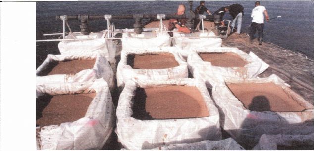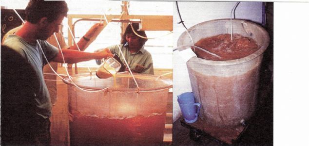 Enriched Artemia can be stored in 5-10 degrees, chilled environment. During this holding period, 2-6 million larvae can be stocked per liter. The vitality can be 100% in this environment for 24 hours. There will be no loss of energy or food since the metabolism of the larvae will slow down with this cold soaking. When the water rises to 25 degrees, vital activity will begin immediately. For this reason, after enrichment, it is better to cool the larvae until they are fed. ![]() ![]() Picture: (Top) Enriching the Attemia (Bottom) Post-harvest view of eggs collected by the GSLA. |