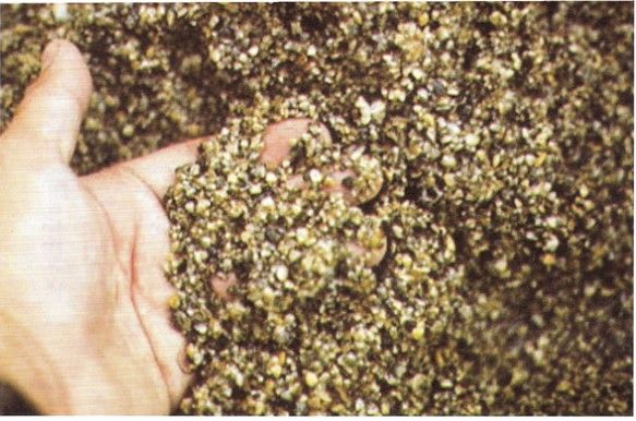 Harvesting is done as stated in the previous brood collection practice. However, collecting is easier because mussels are very common in these areas. The collected sand