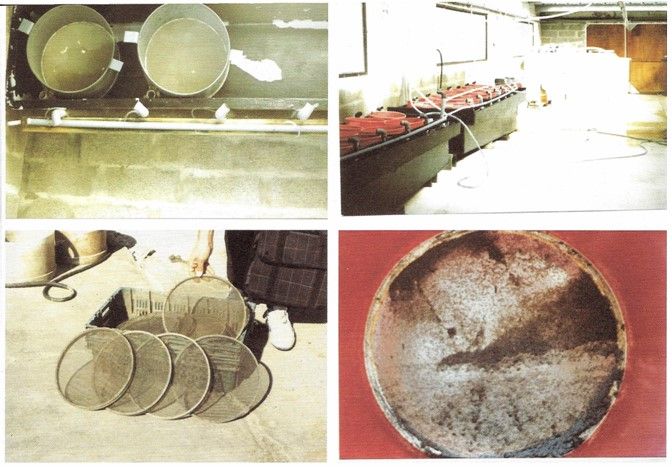Microscopic examination. Then, the eggs are drained with 40 micron strainers and transferred to the production tanks. In these tanks, the water is around 20 degrees.