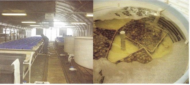![]() Picture:(Left) In an akivades growing area, post-harvest ground cleaning is done. All dead crusts are removed. (Right): Aquavades and other shellfish are kept in clean water to purify them from germs before being marketed. During this period, they are exposed to ultraviolet rays. Disinfection can also be performed using chemicals that are not harmful to health. This process is called depuration.