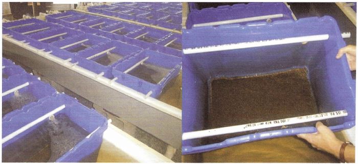 Picture: Akivades juveniles 3-4 mm in size produced by human control and containers used in production.