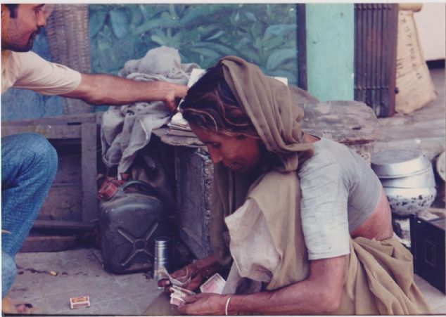 Yürürken bir ara içi kan dolu göletleşmiş bir çukurun yanından geçiyoruz. Etraf kandan kıpkırmızı olmuş ve kurumuş kanlar korkunç bir görüntü veriyordu. Burada adak kesildiğini söylüyor. Tek bıçak darbesiyle hayvanın kafasının kesilmesi lazımmış. Bu tür vuruş ile kesilen hayvanların kafasından etrafa kan sıçraması da doğal. Bu arada pazarlığımız ben istemesem de devam ediyor. "Biz vejetaryeniz" diyor. "Et yemeyiz, sebze yiyenlerdeniz" diyor. Kesimden sonra etleri sattıklarını ve yemekhaneye para sağladıklarını söylüyor. Bu ara iki turist daha görünüyor. Rahmanın gözü onlarda. Benim ile işi bitti sayılır. Hemen "fazla ama al 50 rupi" diyorum. Sevinerek, gülerek, yerlere eğilerek ayrılıyor. Ne istedi, ne verdim. Güler misin ağlar mısın? Hemen uzaklaşıyor. Nasıl da memnun oldu diye gülüyorum. Şimdi iki turiste aynı hikayeleri anlatıyor sanırım. O da yaşamını böyle kazanıyor. Bu ara çığlıklar duyduğumuz yere yaklaşıyoruz. Bir çocuk ölmüş, ailesi matemde. Sanki itişme kakışma gibi hareketler ile ağlaşıyorlar. Hüzün verici, ağlamaklı bir ortam, garip bir duygu içine giriyorum. 6 milyarlık dünyada hergün binlerce doğanlar ve ölenler var, bu da onlardan biri diye düşünüyorum. Canı yananlar anne, baba, kardeş. Böyle söyleyip bir bakıp geçiyoruz. Allah rahmet eylesin diyorum. Cenaze için ağlayanların hepsi beyaz elbiseler giymişler. Resim çekmek istiyorum, ama çekiniyorum.